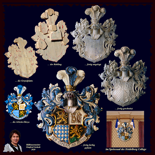 .....hier noch einmal eine Zusammenstellung von der Arbeits-Skizze bis zum fertigen Wappen.