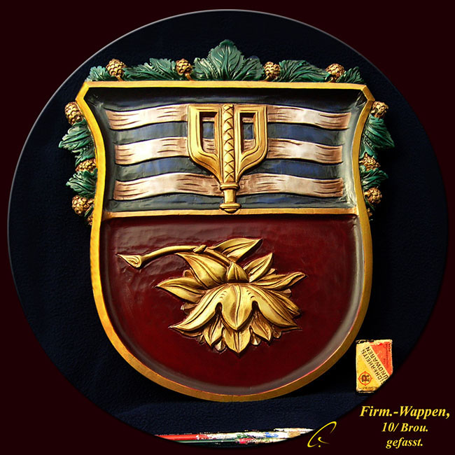 Firmenwappen / Brou.- 11 - in den Firma Farben gefasst .